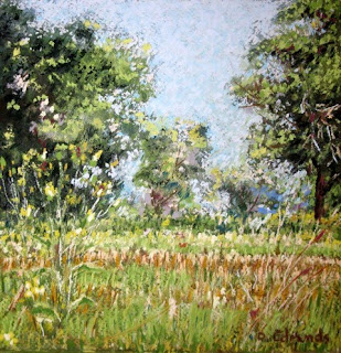 I became interested in reduction relief printing when I viewed some art while in Denver at a neat little gallery there. This process is done by using a wood block or linoleum block called lino block. First you draw your idea on the surface of the block and then carve away the piece until you have an outline. The outline is inked and printed on paper. With reduction printing you carve the piece out a little bit more for each color change. After you have reduced the block, you no longer can print the piece. So, the first print you would determine the number in the series and create as many copies that you need. Then print over each with the whatever number of colors that will be in the piece.